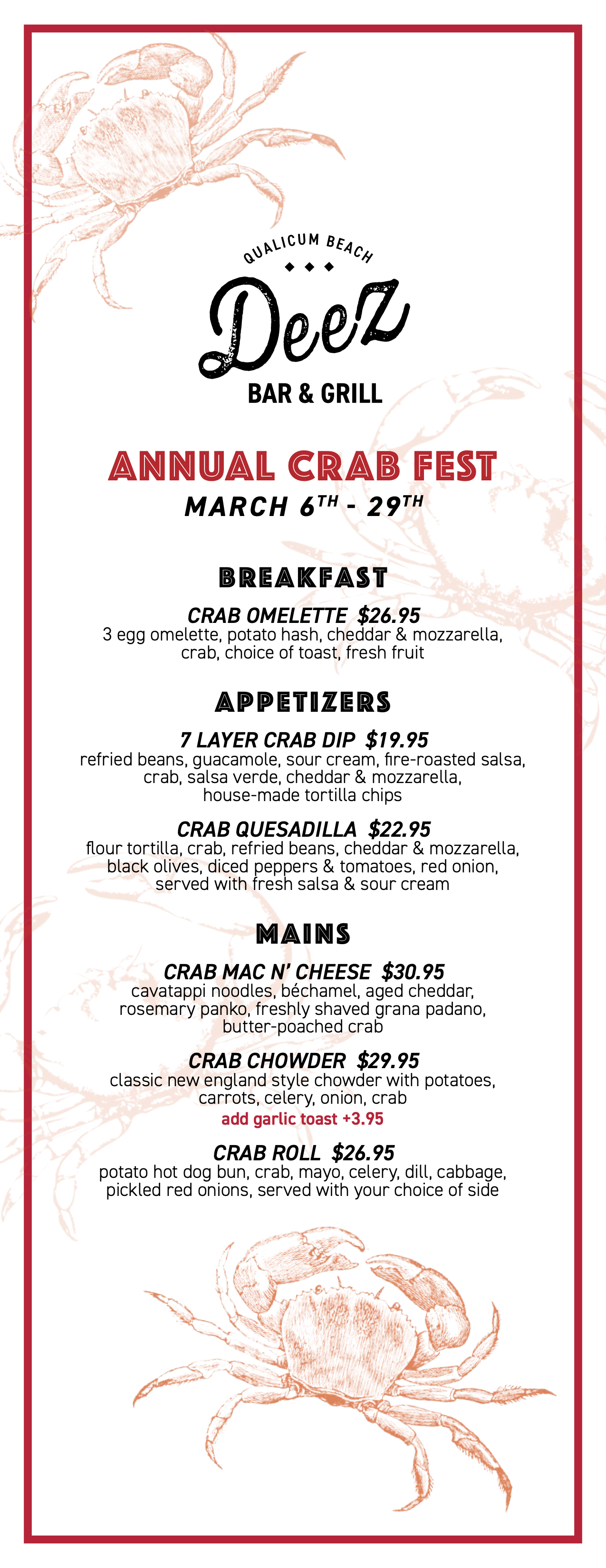 This March join us across all Moments Hospitality locations as we celebrate the very best of B.C. crab. Featuring thoughtfully crafted set menus including appetizers, entrees, and brunch, this limited-time event showcases locally-sourced crab in all its glory.